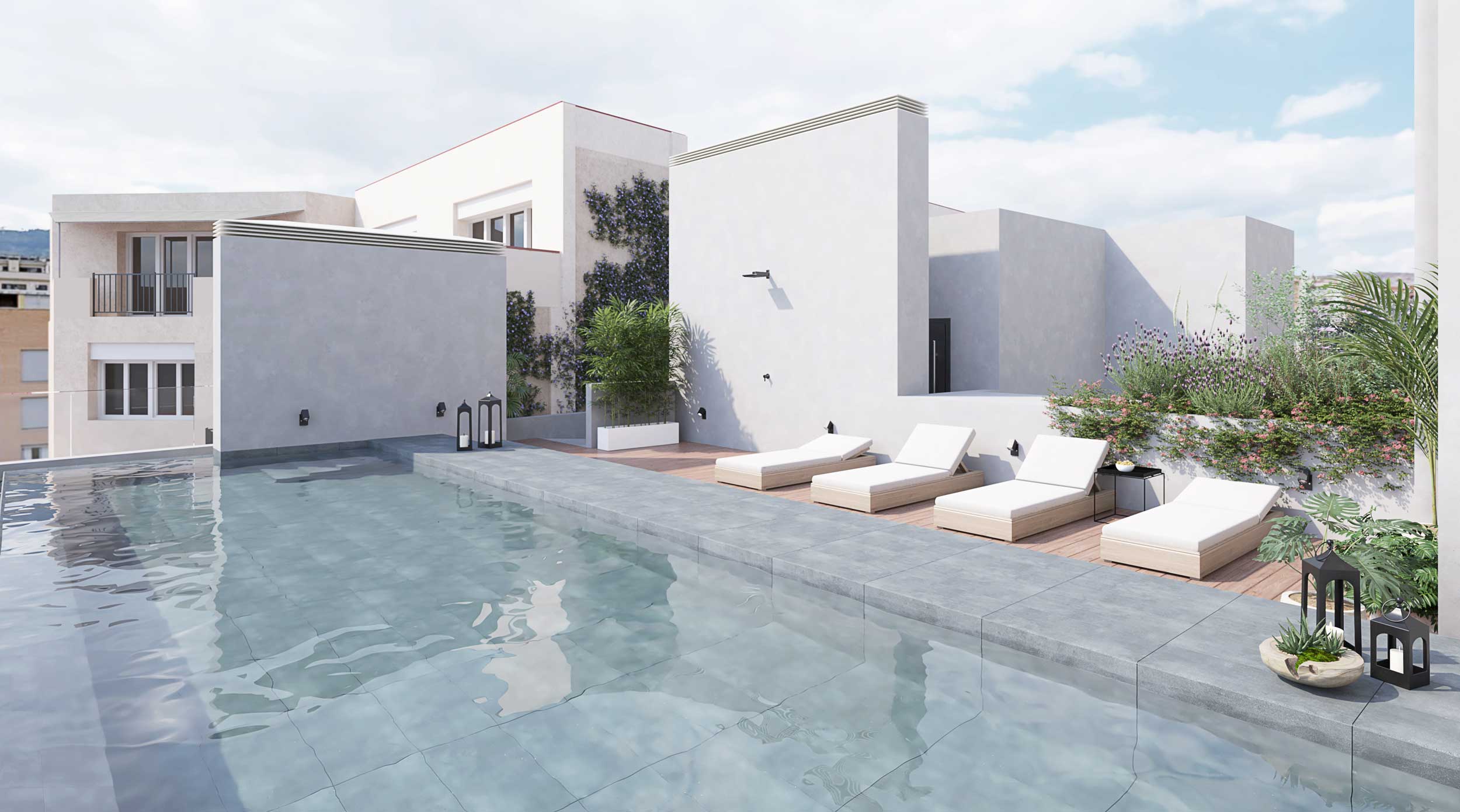 VIUCENTRE dispone de 21 exclusivas viviendas de 1, 2 o 3 habitaciones con una ubicación privilegiada. Tendrás a pocos pasos toda la oferta de servicios y ocio del Eixample de Barcelona y a la vez podrás conectar con la armonía y el bienestar gracias a sus espectaculares zonas comunes con piscina de agua salada y solárium con zona chill out. Acabados y equipamientos pensados para proporcionarte el mayor confort y ahorro energético.